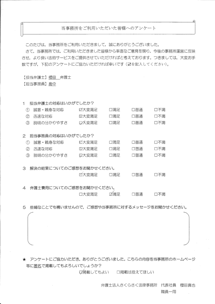 T様は、前勤務先で先輩からいじめを受け、金銭や物品を貢ぐことを強要され、これらを捻出するために借入れやカード利用をしました。このいじめについて勤務先は何ら対応をせず、T様は、先輩との人間関係を断ち切るため、転職しました。しかし、収入が減少し、返済が困難となりました。